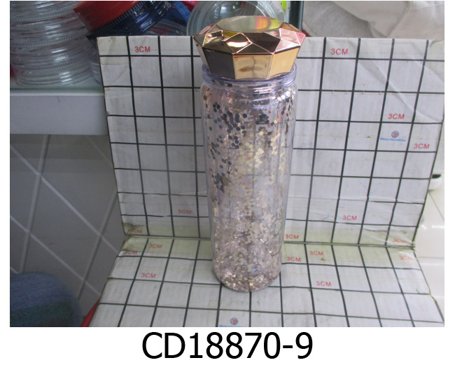 Botella Glitter Diamante de 500 ML hecha de plástico con aislamiento de doble amurallado creativo, con la tapa en forma de diamante